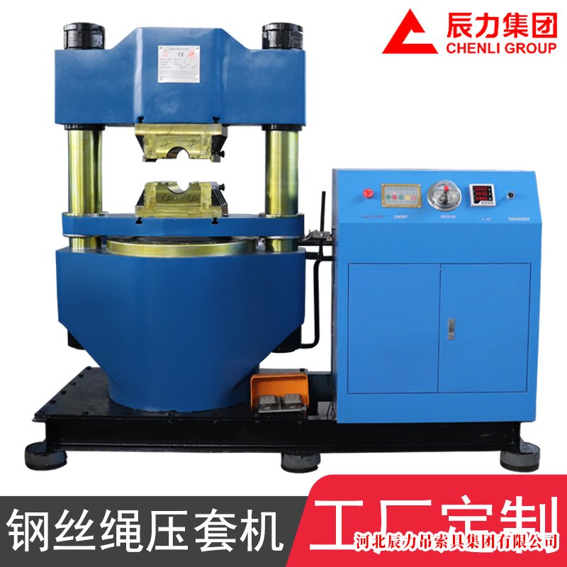 鋼絲繩壓套機(jī)是上較流行的一種鋼絲繩索具加工設(shè)備,經(jīng)過(guò)我國(guó)設(shè)備制造引進(jìn)、研發(fā)、改進(jìn)、生產(chǎn)后在企業(yè)中被廣泛使用,該設(shè)備通過(guò)液壓為動(dòng)力